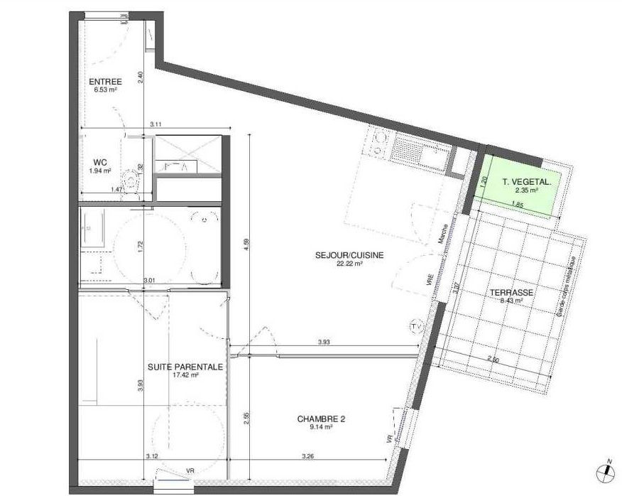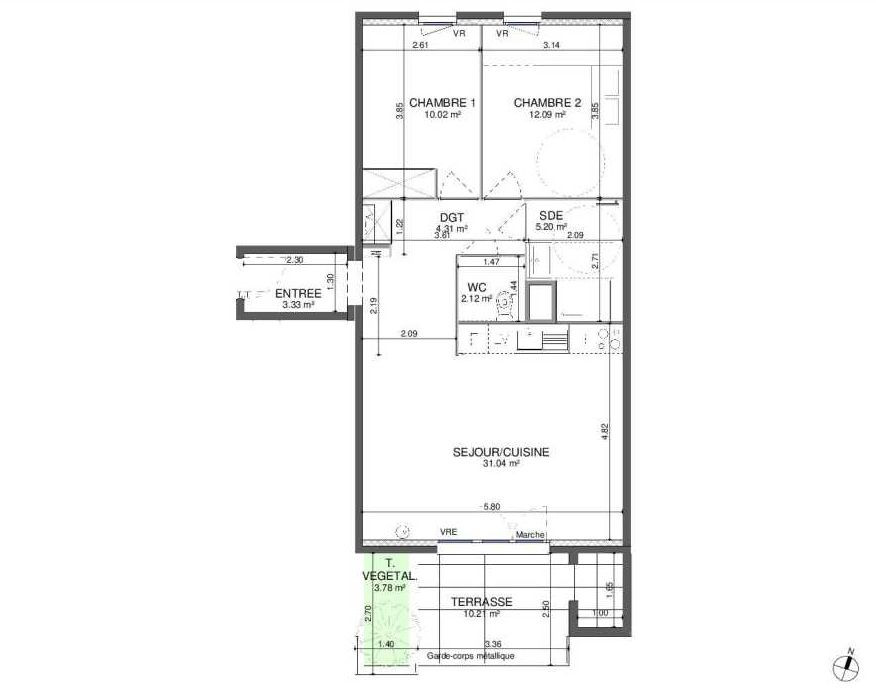 3 pièces de 57 à 68 m²